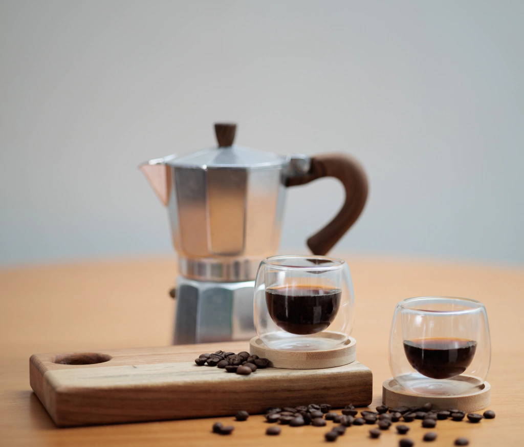 Cafeteira Italiana alumínio e alça cor bambu Mimo Style
