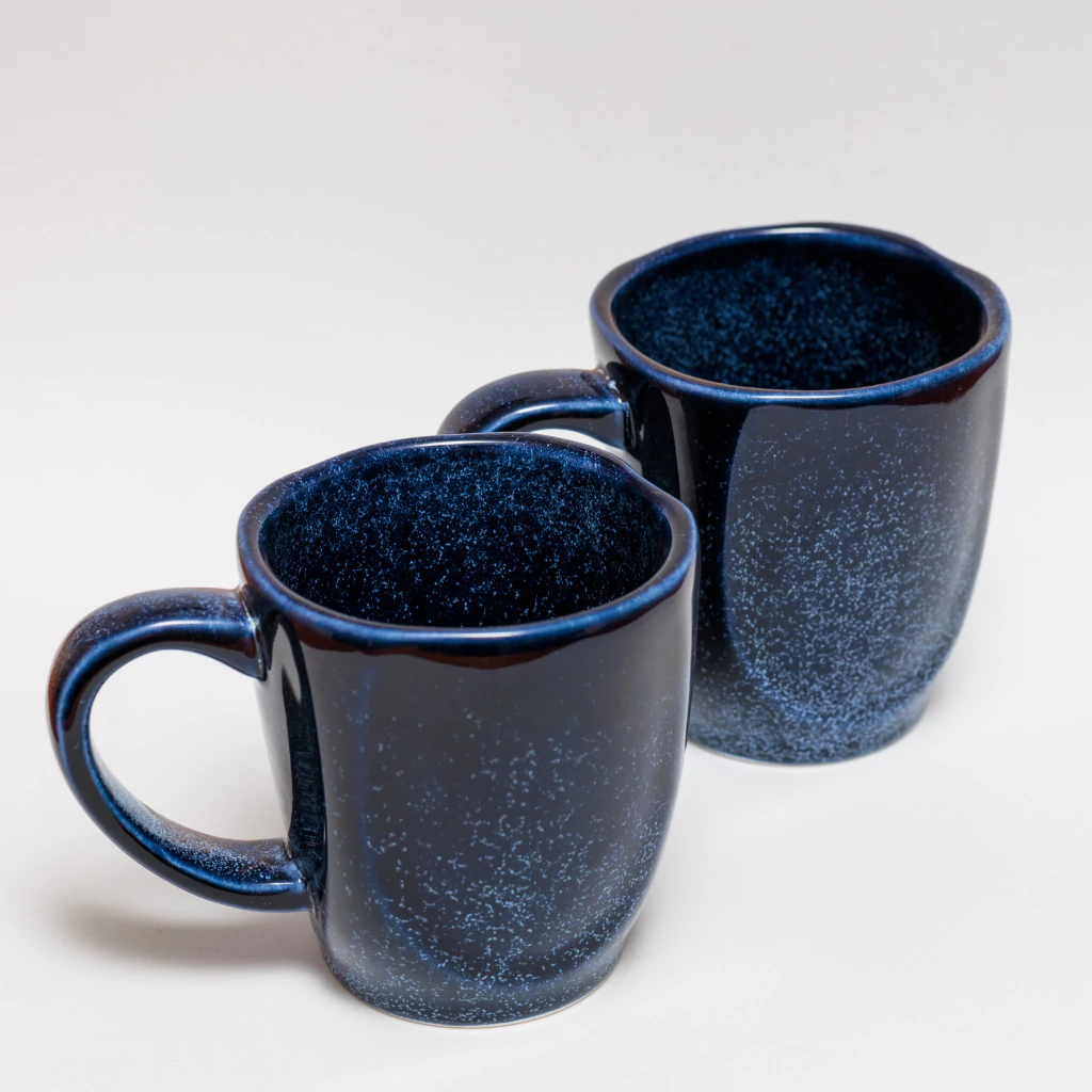 Caneca azul marinho, da linha Noite Estrelada, em porcelana. Sua cor e desenho lembra um céu azul estrelado, perfeita para chá e café.