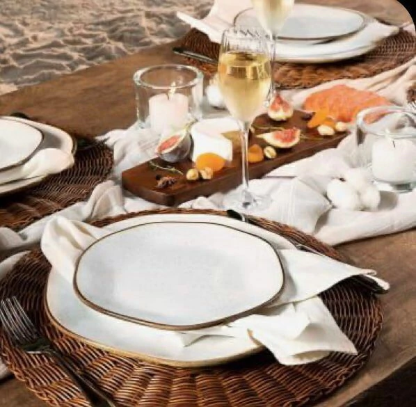 Na cor predominantemente branca, com pintinhas espalhadas pela peça e borda mais escura, este é um prato clássico que costuma ir muito bem em jantares sofisticados quanto para o dia a dia. Com esmalte reagente, nenhuma peça é totalmente igual a outra, o que traz a modernidade à mesa.